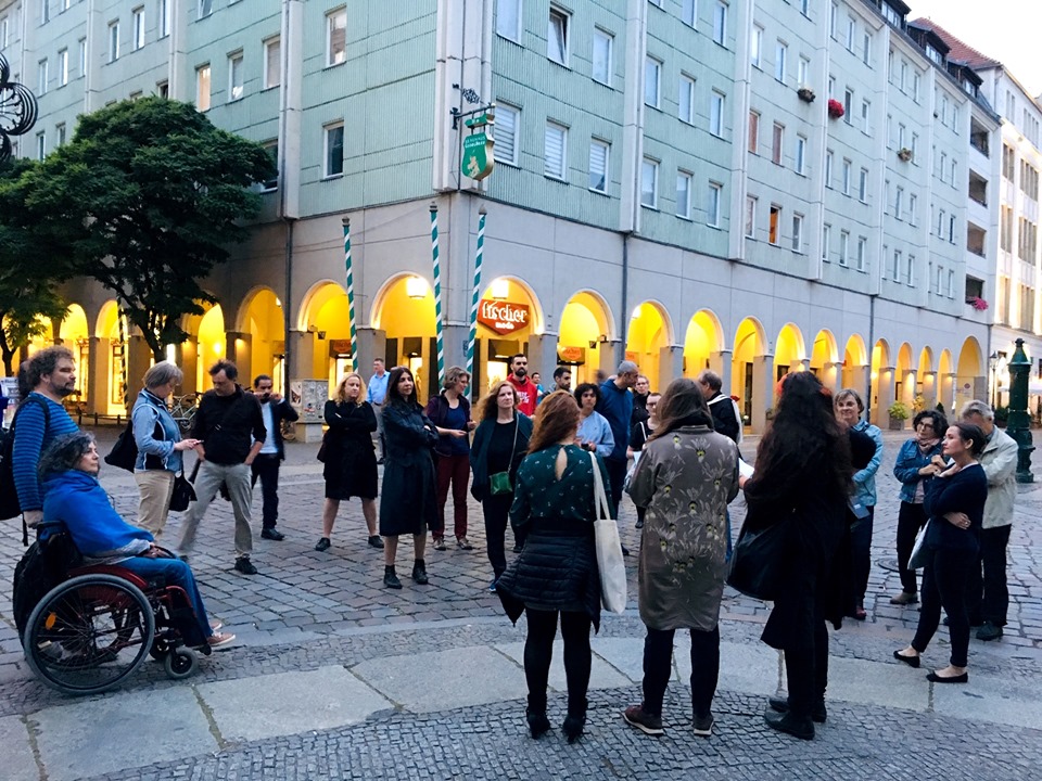 lm Anschluss an die Lesung waren alle Besucher*innen eingeladen, die Autor*innen auf einen literarischen Spaziergang zu einigen der beschriebenen Orte zu begleiten. Dort wurden einzelne Passagen der Texte erneut gelesen und es gab Gelegenheit, miteinander ins Gespräch zu kommen.